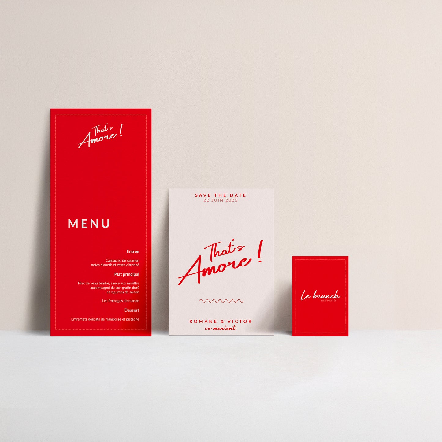 La collection qui incarne la passion à l’italienne. Avec ses tons rouges ardents et beiges élégants, elle évoque un amour vibrant et moderne. Chaque détail, des typographies aux illustrations invite à célébrer une romance unique et intemporelle. Une ode à l’amour et à la dolce vita.
